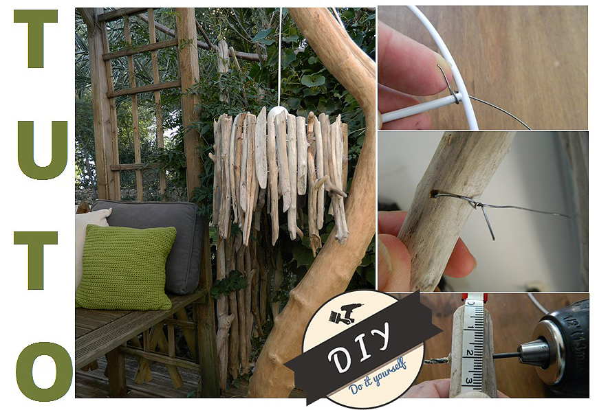 Réaliser un lustre avec des bois flotté style « Bâton », rien de plus simple grâce au tutoriel imagé Au fil de l’eau.