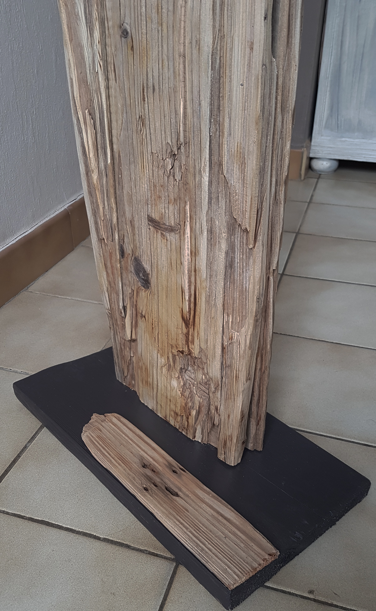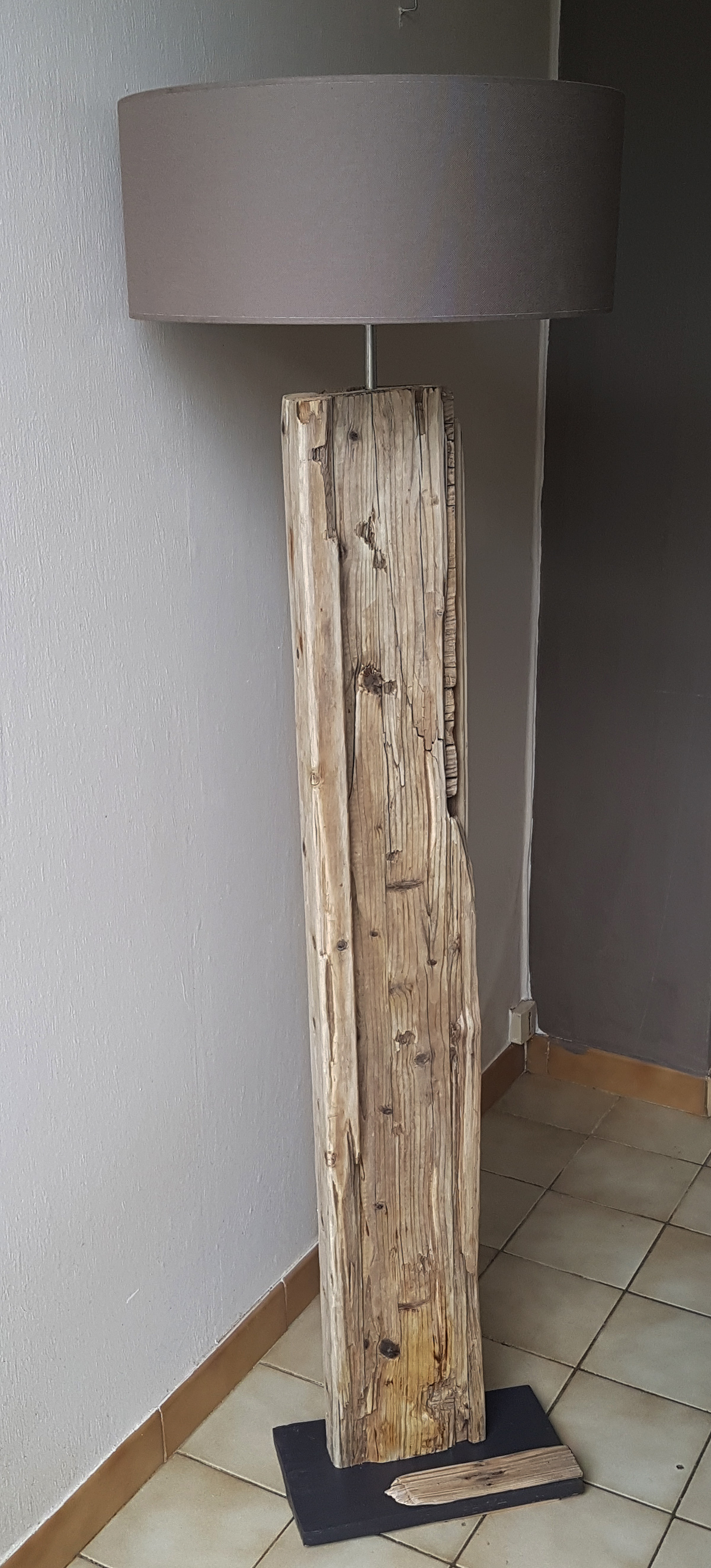 – Un lampadaire en bois flotté