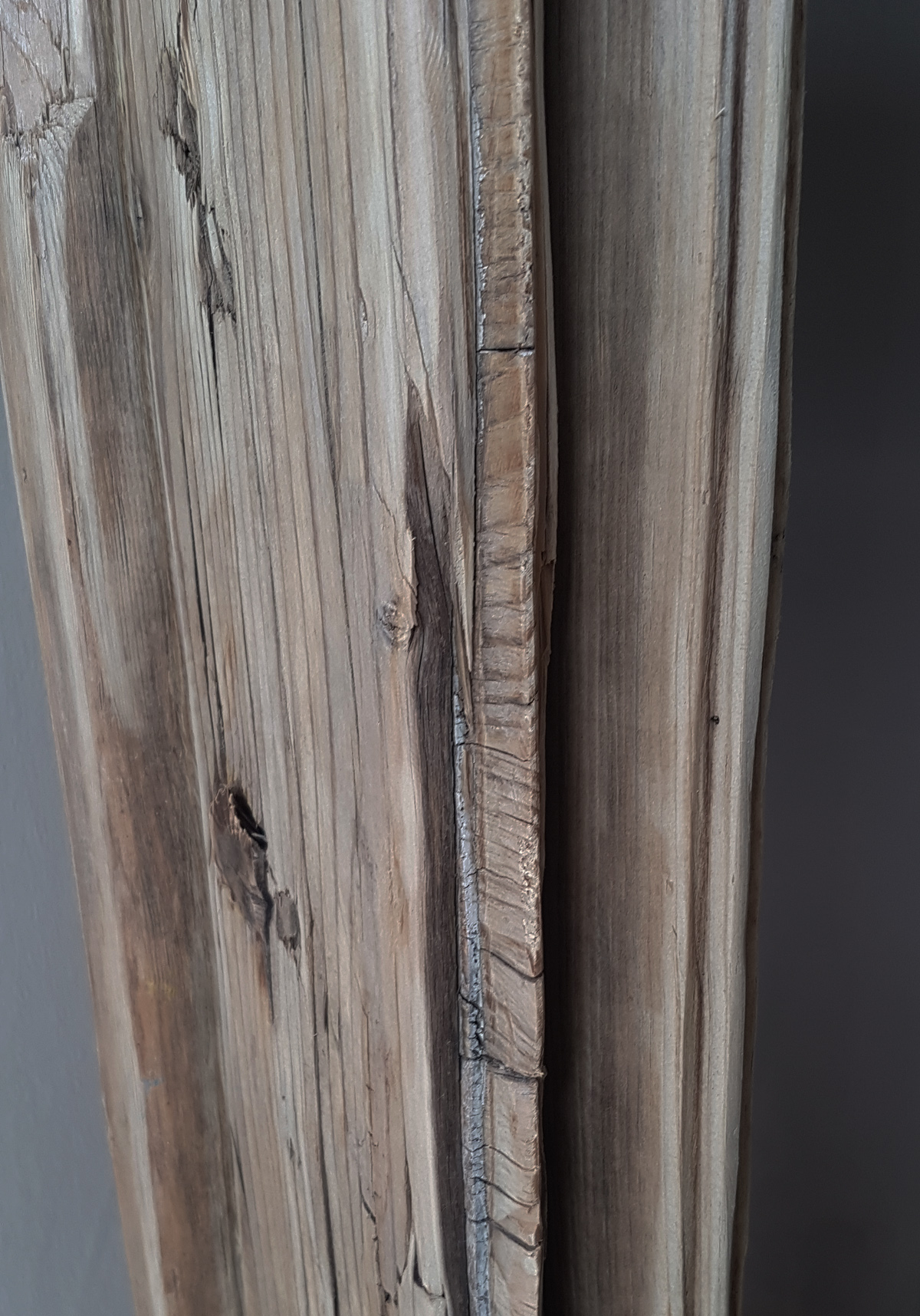 Un lampadaire style « Planches » vraiment unique. Réalisé avec un amas planches de bois flotté  assemblées les unes aux autres et  sans retouches (probablement des planches de différentes épaisseurs et formats, qui ont servi de coffrage) et qui n’ont pas été désolidarisées. Il a subit un nettoyage méticuleux avant d’installer le branchement avec la sortie vers l’unique orifice naturel. Plus qu’un lampadaire c’est une création très particulière .Le socle est en bois peint couleur ébène.