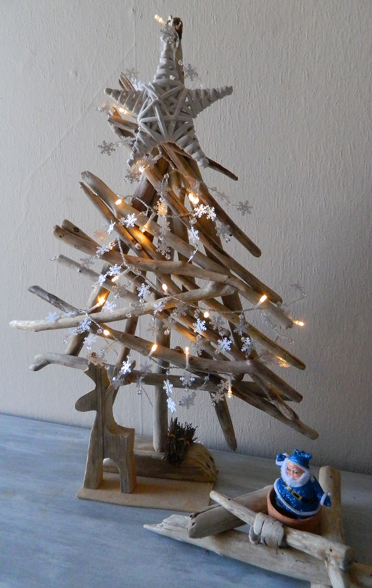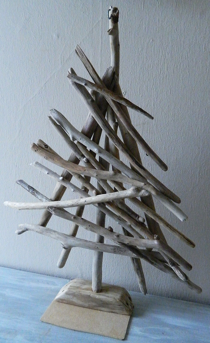 Un joli de sapin de Noël réalisé avec des branches de bois flotté naturelles astucieusement entrelacées pour qu’ au final ce sapin de Noël puisse être prêt à poser chez vous . Une décoration épurée et dans l’air du temps permettra de rajouter une guirlande originale et des éléments déco au pied du sapin.