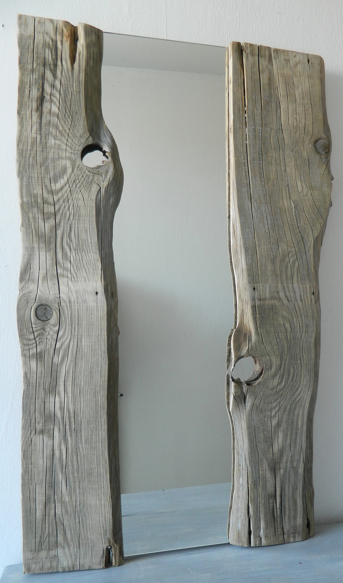 Un miroir unique  réalisé avec 2 planches qui ne sont pas des planches de bois flotté mais de très jolies planches vieillies et grisées naturellement par le temps. Le plus … Il est possible de le positionner à la verticale comme à l’horizontale!