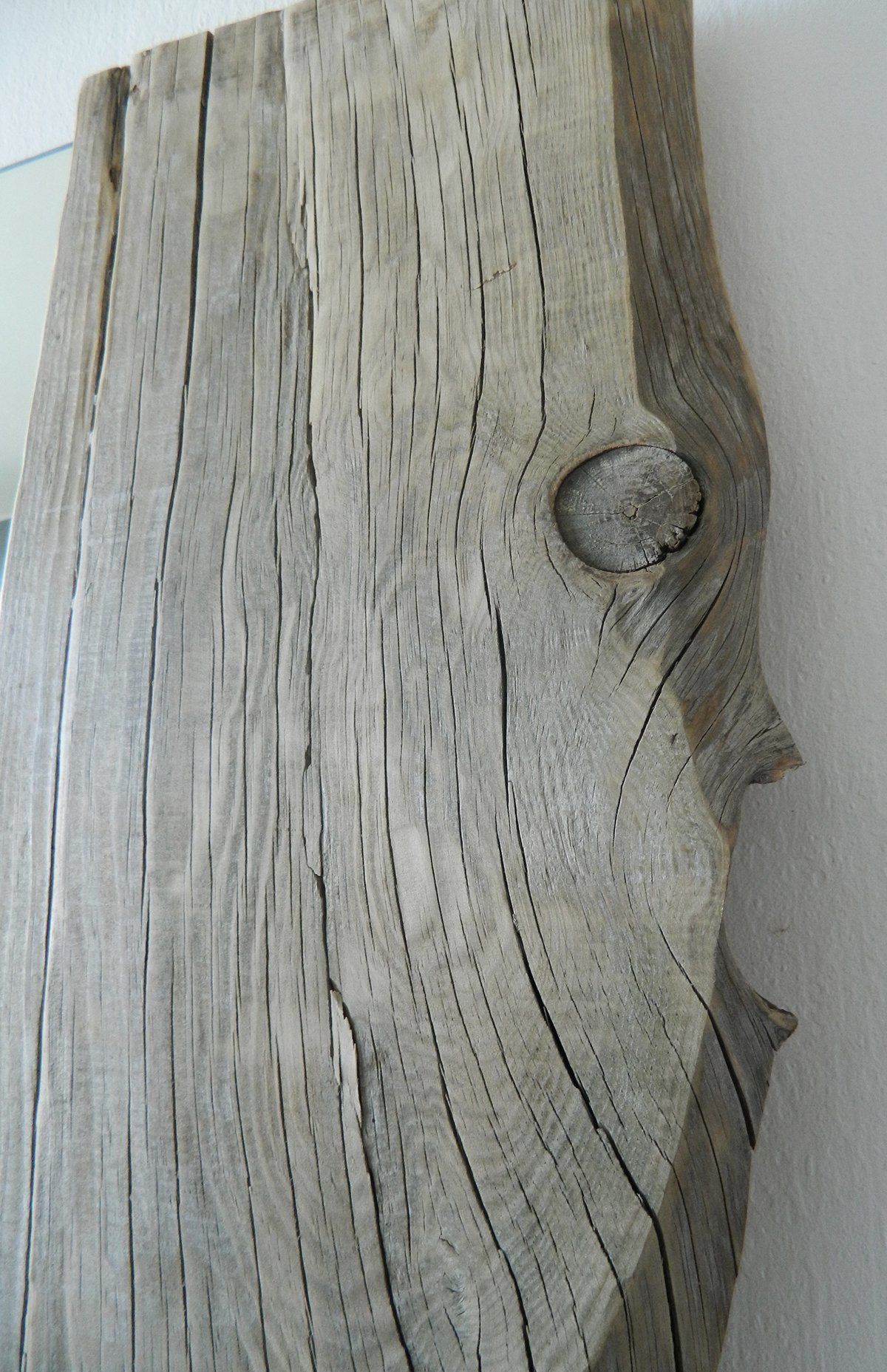 Les deux emplacements d’anciens nœuds du bois ont donné l’ opportunité de jouer sur l’effet de laisser entrevoir le miroir à travers . C’est aussi ça l’Esprit Nature…..