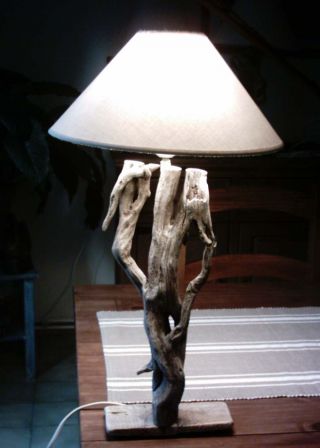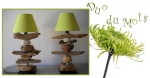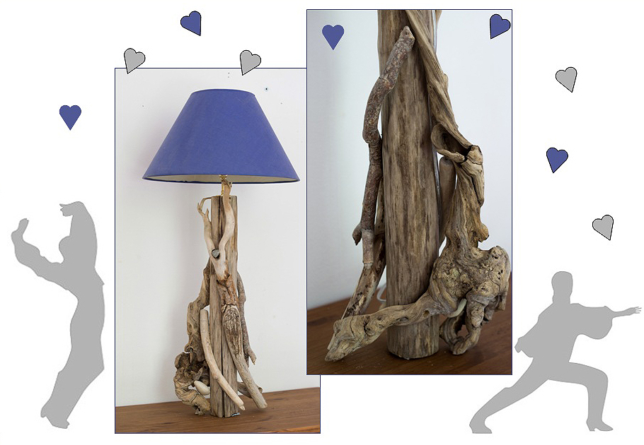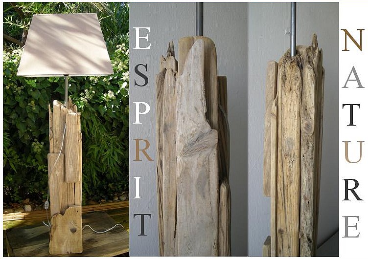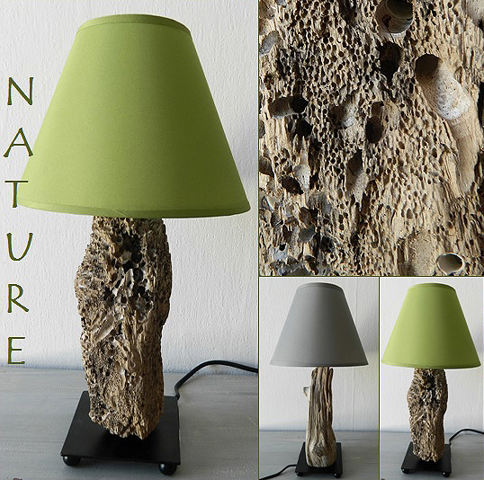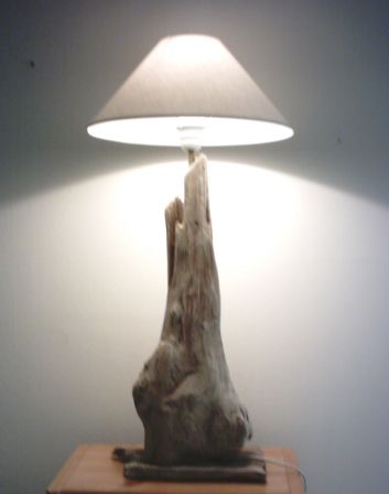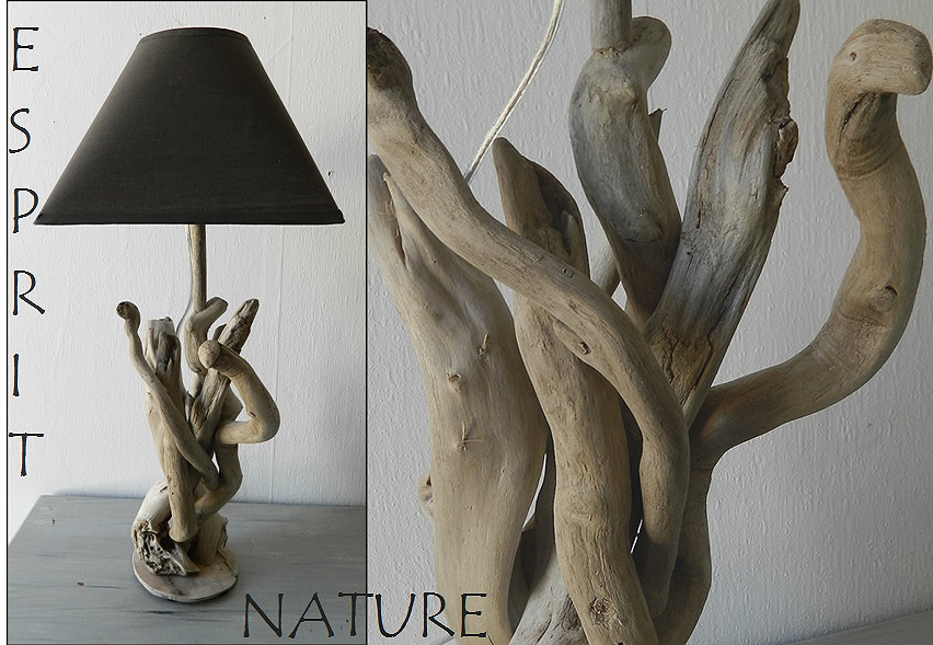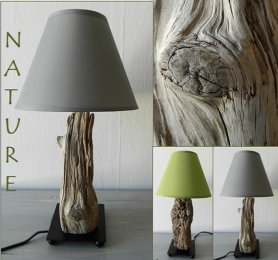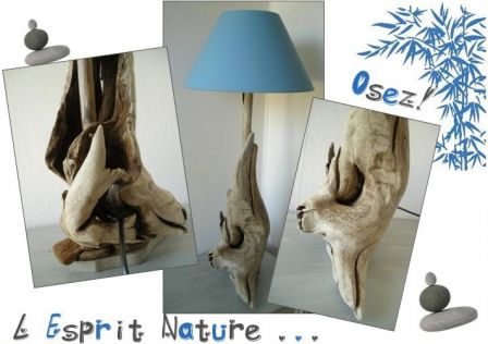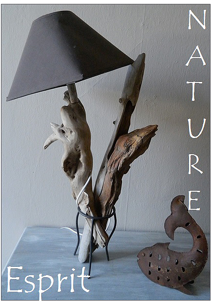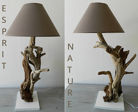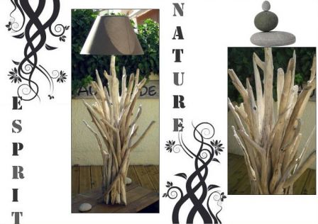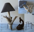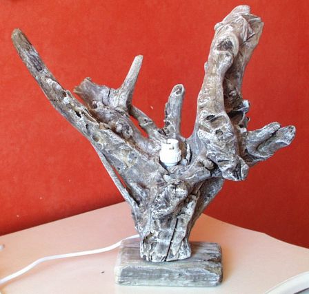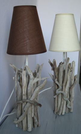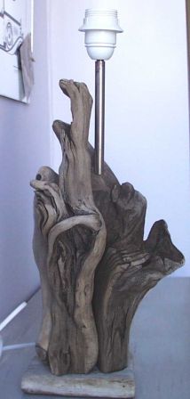 Ici sont exposées quelques lampes en bois flotté réalisées depuis des années .
