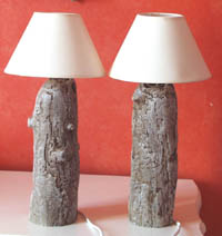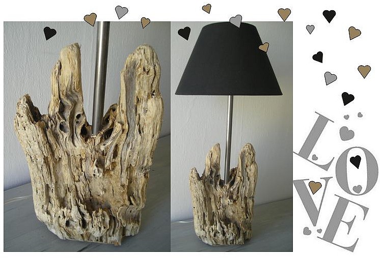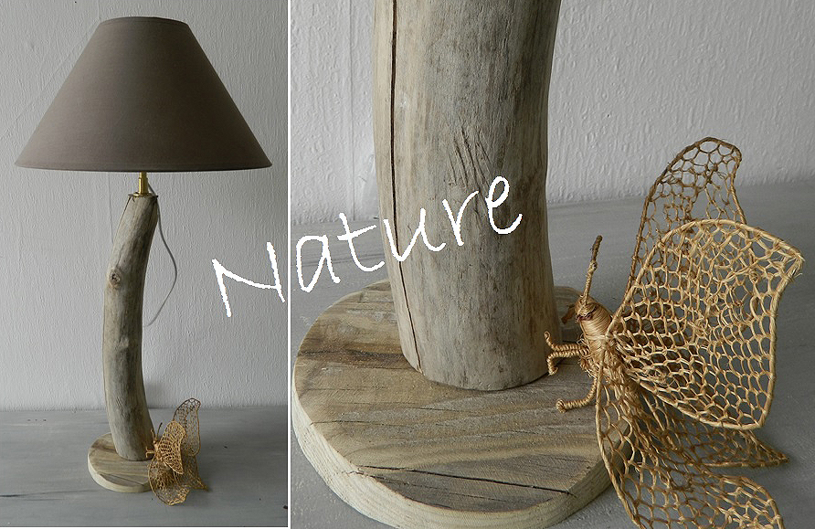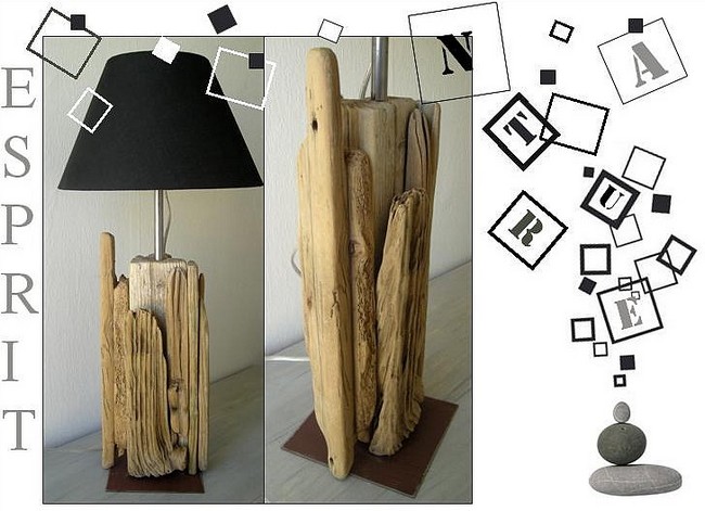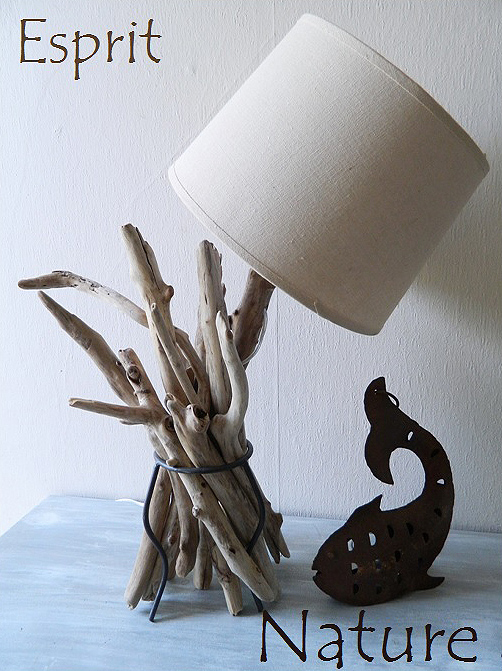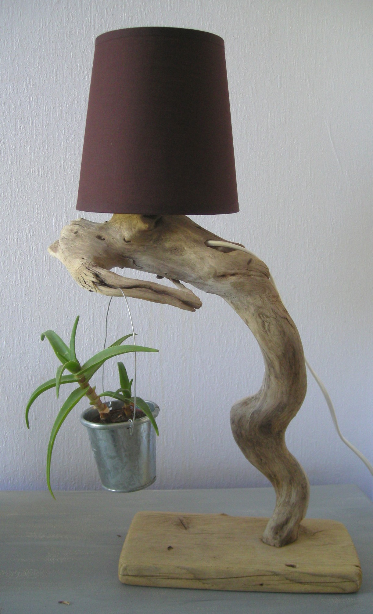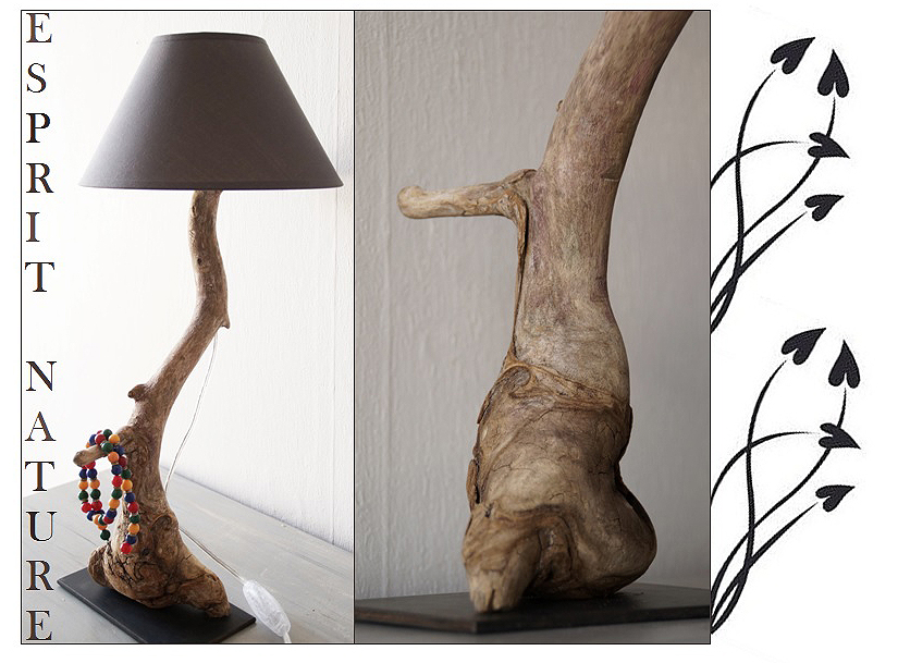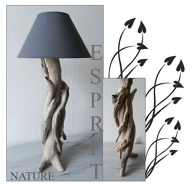 Ici sont exposées quelques lampes en bois flotté réalisées depuis des années .