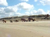 Un troupeau d’éléphants qui descend des dunes vers la mer.