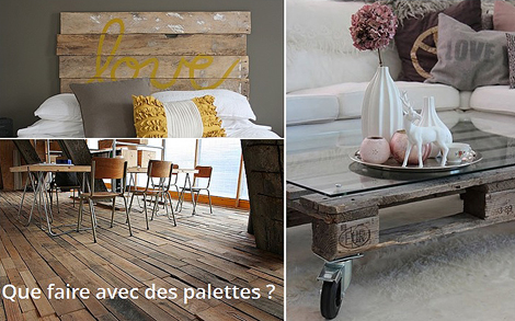 Vous avez des palettes, vous aimeriez vous fabriquer un meuble déco écolo et vous manquez d’idées créatives , Au fil de l’eau a déniché un article posté sur le net qui propose 20 idées astucieuses et tendances à faire avec de simples palettes de récupération!