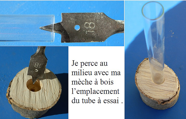 – Mon tube à essai mesure 1, 8 mm, mesurez le vôtre avant de choisir votre mèche à bois, il se peut que le diamètre soit différent.