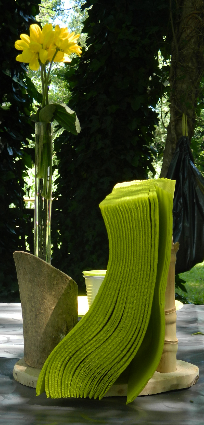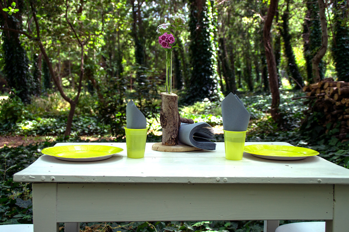 C’est le temps des repas entre amis en plein air, on ne s’embarrasse pas de vaisselle et de contraintes,  on sort les serviettes et les assiettes en papier pour se laisser  aller à une déco plus simple et naturelle.
