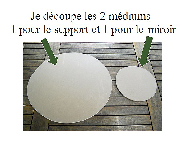 – Dessiner 2 cercles sur le médium celui du miroir et celui du support.