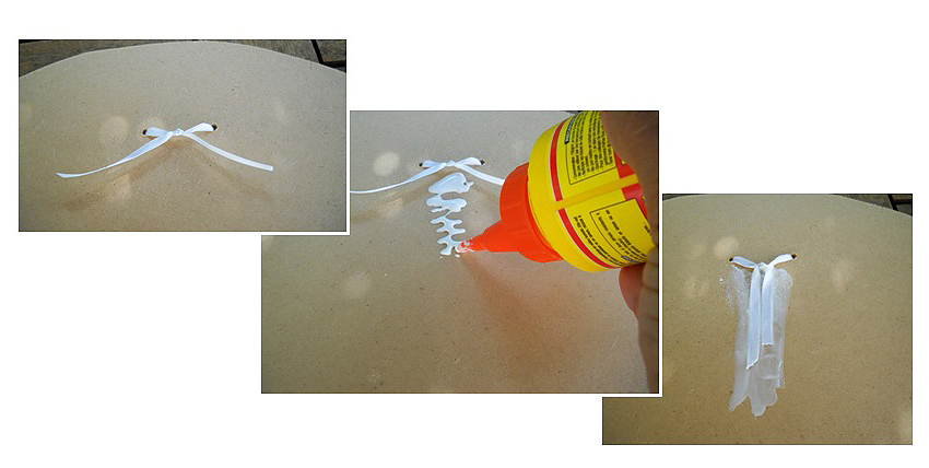 – Enfiler par l’arrière le ruban et nouer par devant sans trop serrer . (voir photo)