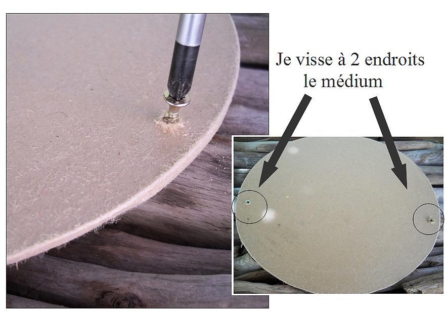 – Les têtes ne doivent pas trop dépasser de la surface du médium, c’est pour cela que j’ai choisi 2 vis fines.