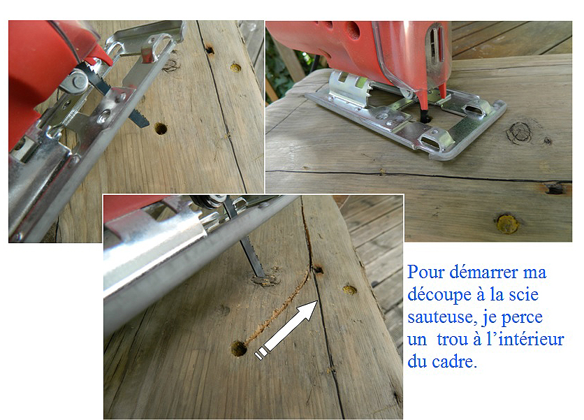 Astuce: Pour démarrer votre découpe percer au centre un trou de la largeur de votre lame de scie