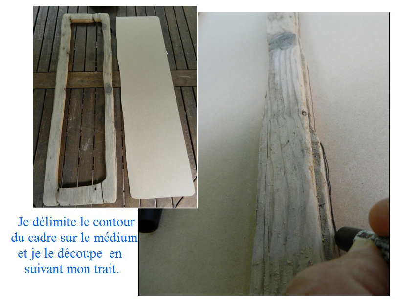 – Dessiner au feutre le contour intérieur de votre cadre sur la planche