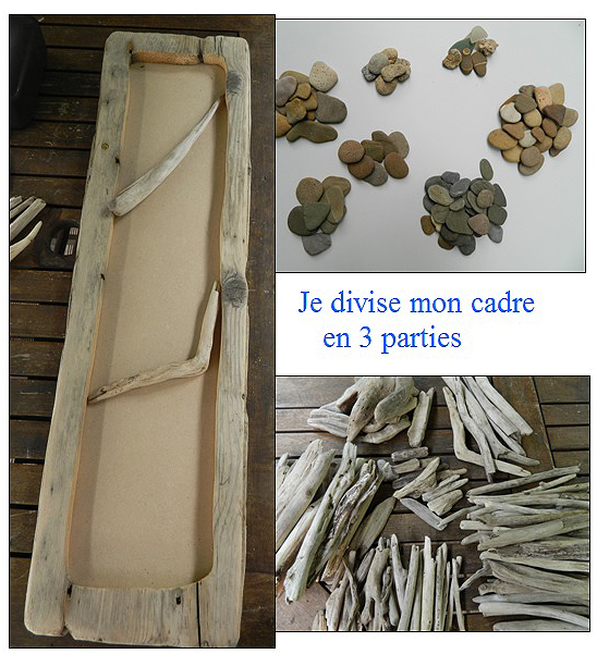 – Coller les 2 bois séparateurs puis une fois sec vous pouvez commencer à garnir votre cadre soit en suivant ce modèle, soit en le créant vous même selon votre inspiration.