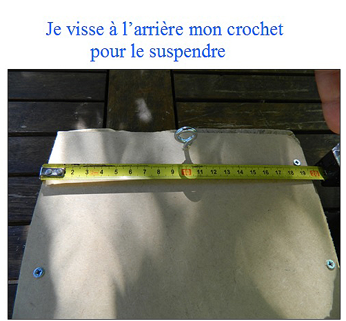 – Pour suspendre votre tableau, mesurer le milieu de votre planche à l’arrière pour visser votre crochet rond.