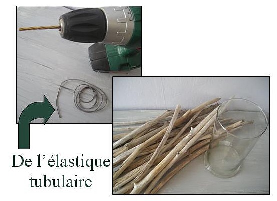 Pourquoi de l’élastique plutôt que du fil de fer, c’est une question de pratique. Vous pourrez retirer et remettre la déco du vase sans problème après l’avoir lavé.