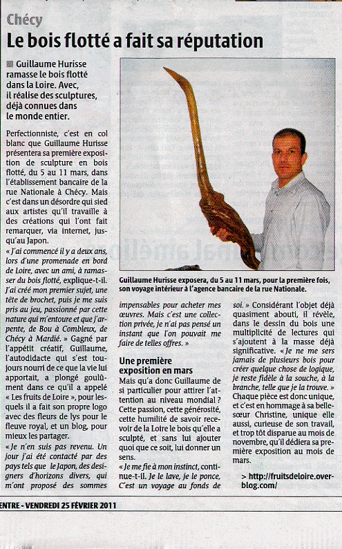 Sur son site « Fruits de Loire » il nous révèle avec sincérité, émotion et poésie les sentiments qu’il éprouve en travaillant ses pièces de bois flotté .Je vous invite à y faire un tour si vous n’y êtes jamais allé.