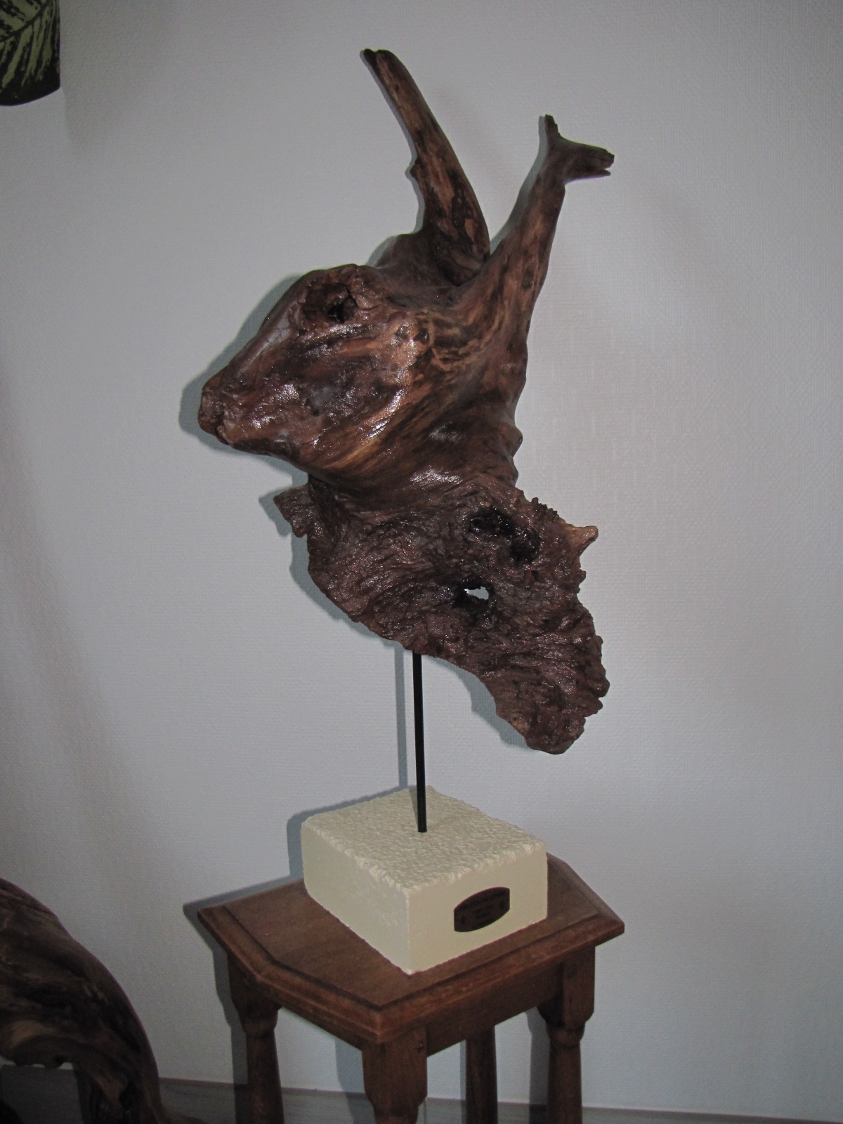Guillaume explique cette attirance très forte pour le bois flotté tout d’abord par l’aspect  et la couleur toujours différents de chaque pièce qu’il récolte , mais aussi une fois sa pièce choisie il aime se laisser porter par son imagination et décider de l’aspect définitif qu’il va lui donner . Quelques fois les pièces parlent d’elles mêmes, sa forme est une évidence et puis d’autres demandent une attention particulière et ce sera une sculpture étonnante qui sortira de son l’imagination.