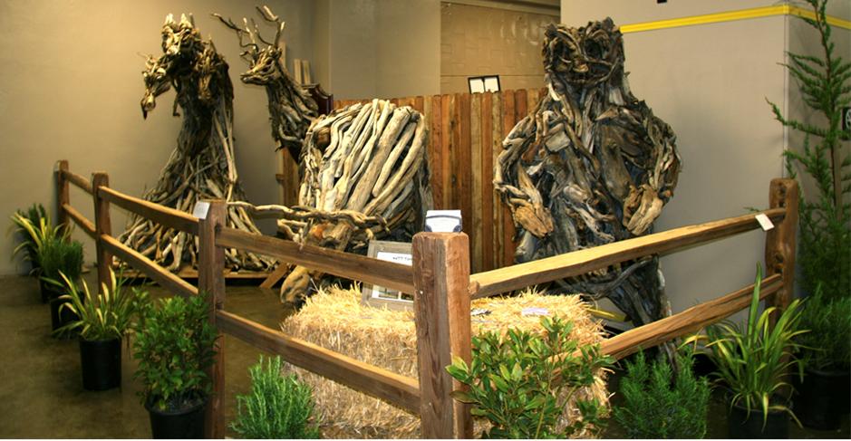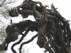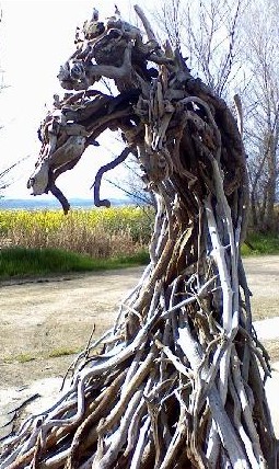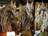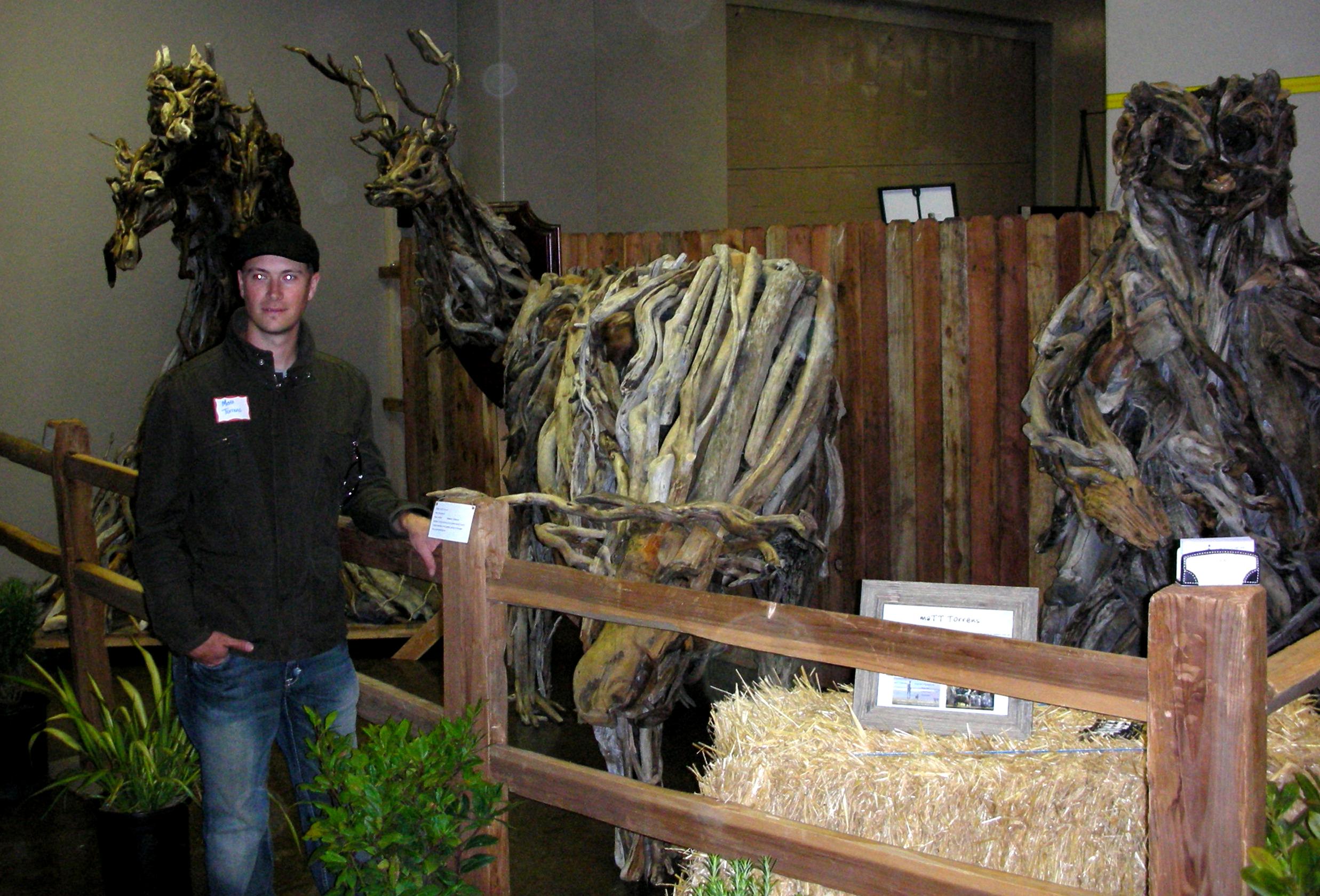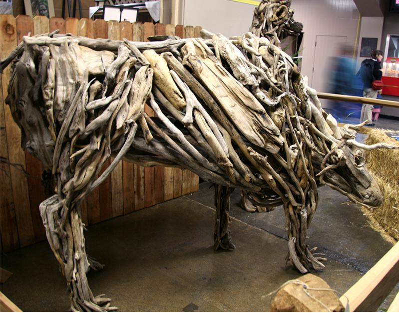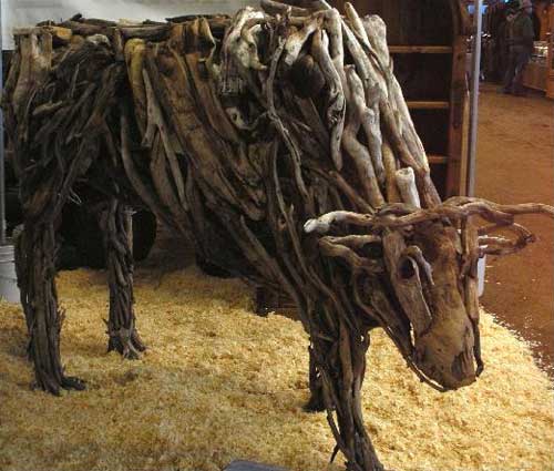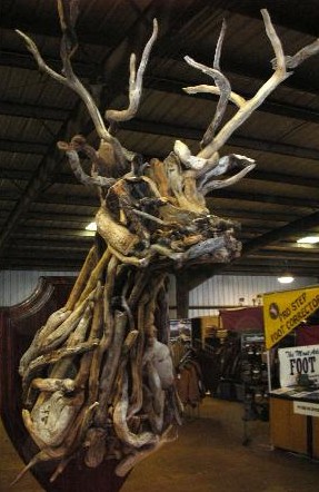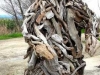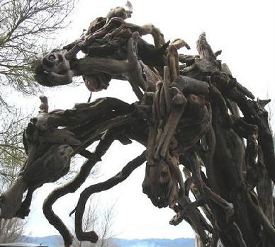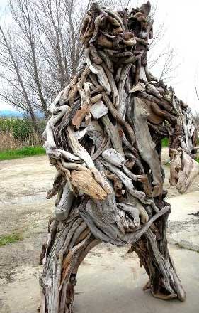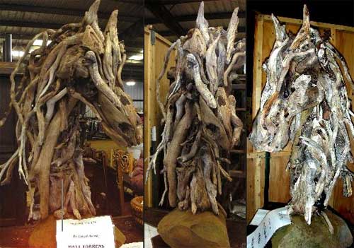Ses sculptures sont réalisées essentiellement avec du bois de grève de manzanita.