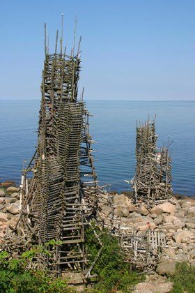 Lars Vilks persiste et signe, et après une destruction partielle par le feu, il reconstruira Nimis.