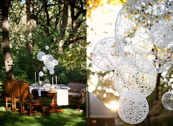 Des boules de ficelles à transformer en lanternes. Un tutoriel déniché sur le blog Ruffled. A réaliser à deux, un pour tenir le ballon l’autre pour entourer le ballon de la ficelle gorgée de colle et d’amidon de maïs. Encore une fois dommage que le blog soit en anglais, Au fil de l’eau vous a dirigé vers un lien sur la photo traduit par Google.