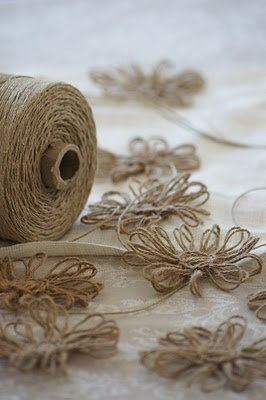 De jolies fleurs de ficelle. Le tuto est disponible sur le site les Bugbytes d’où vient d’ailleurs l’idée première de ces jolies fleurs (tuto en anglais, heureusement le site propose une traduction à gauche de la page Home ).
