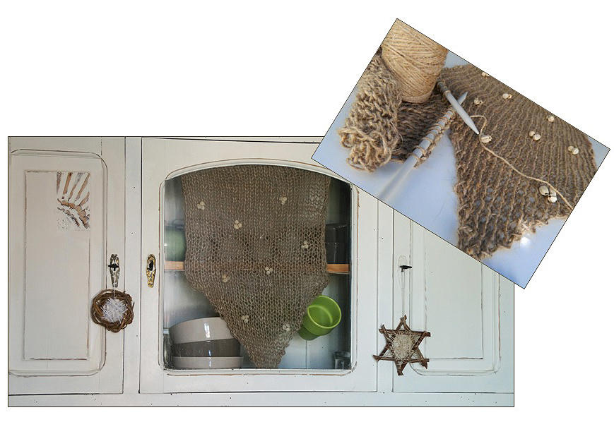 Un rideau tricoté en ficelle. Une idée Au fil de l’eau facile et rapide à réaliser.