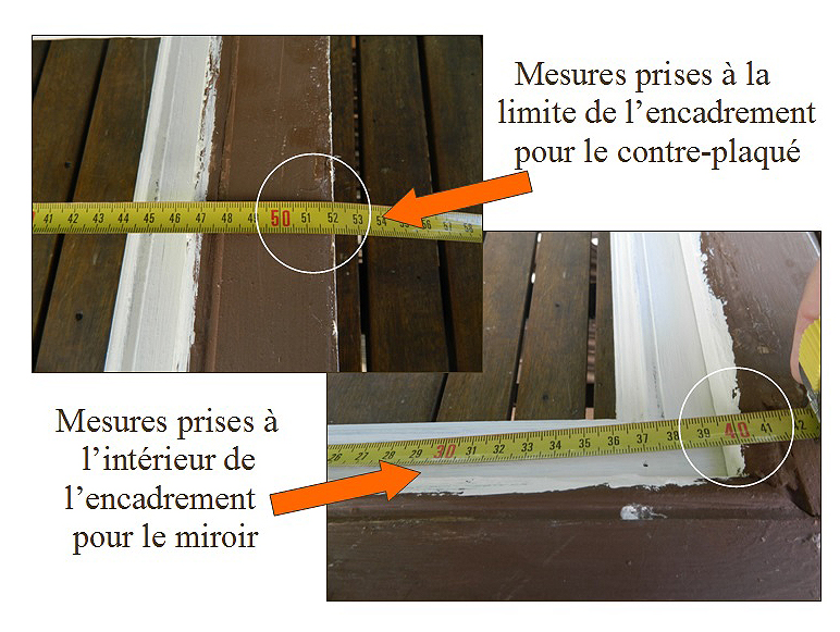 – Noter les dimensions  pour votre contre-plaqué et votre miroir.