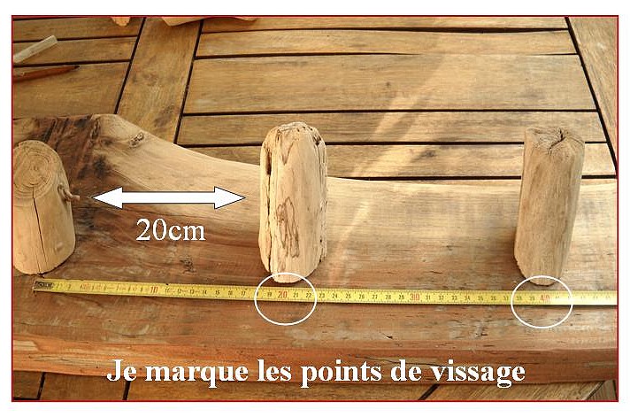 – Visser par l’arrière vos 5 vis dans leur trou respectif.suffisamment pour faire dépasser à peine votre vis de l’autre côté de la planche.