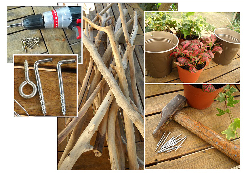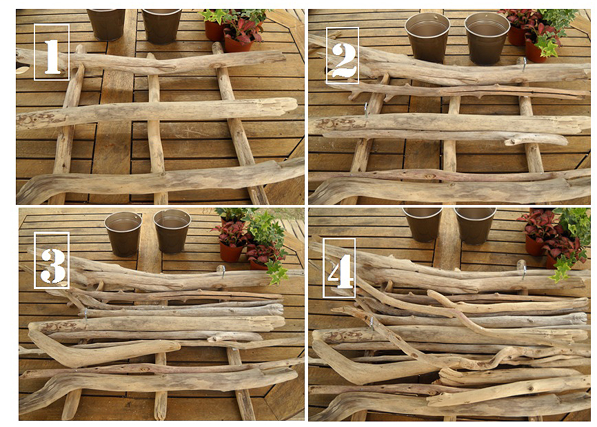 Ceux qui n’ont pas de bois flotté l’on compris ils peuvent fixer sur le quadrillage une autre matière naturelle comme des branches d’arbres séchées, des bambous etc….