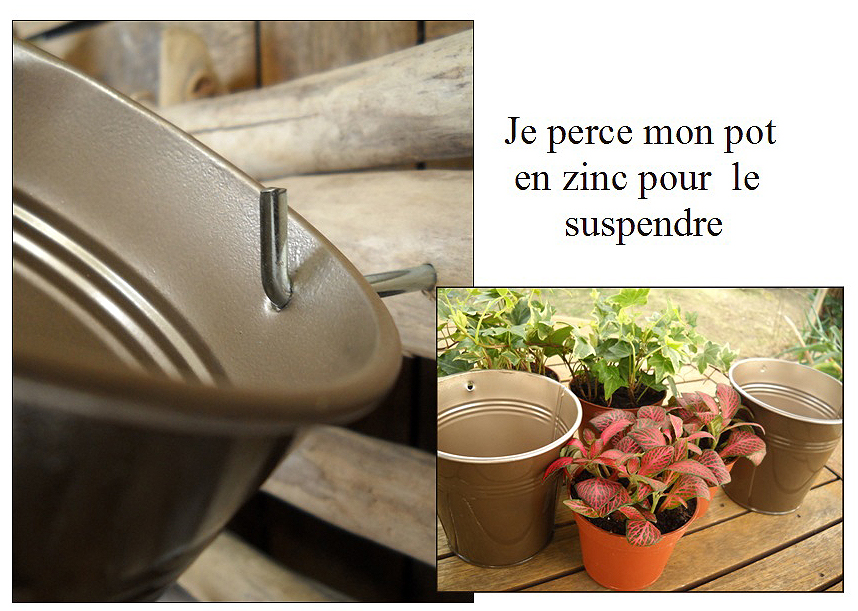 -Pour suspendre les pots, les percer et l’insérer dans le crochet. Garnissez avec les plantes de votre choix.