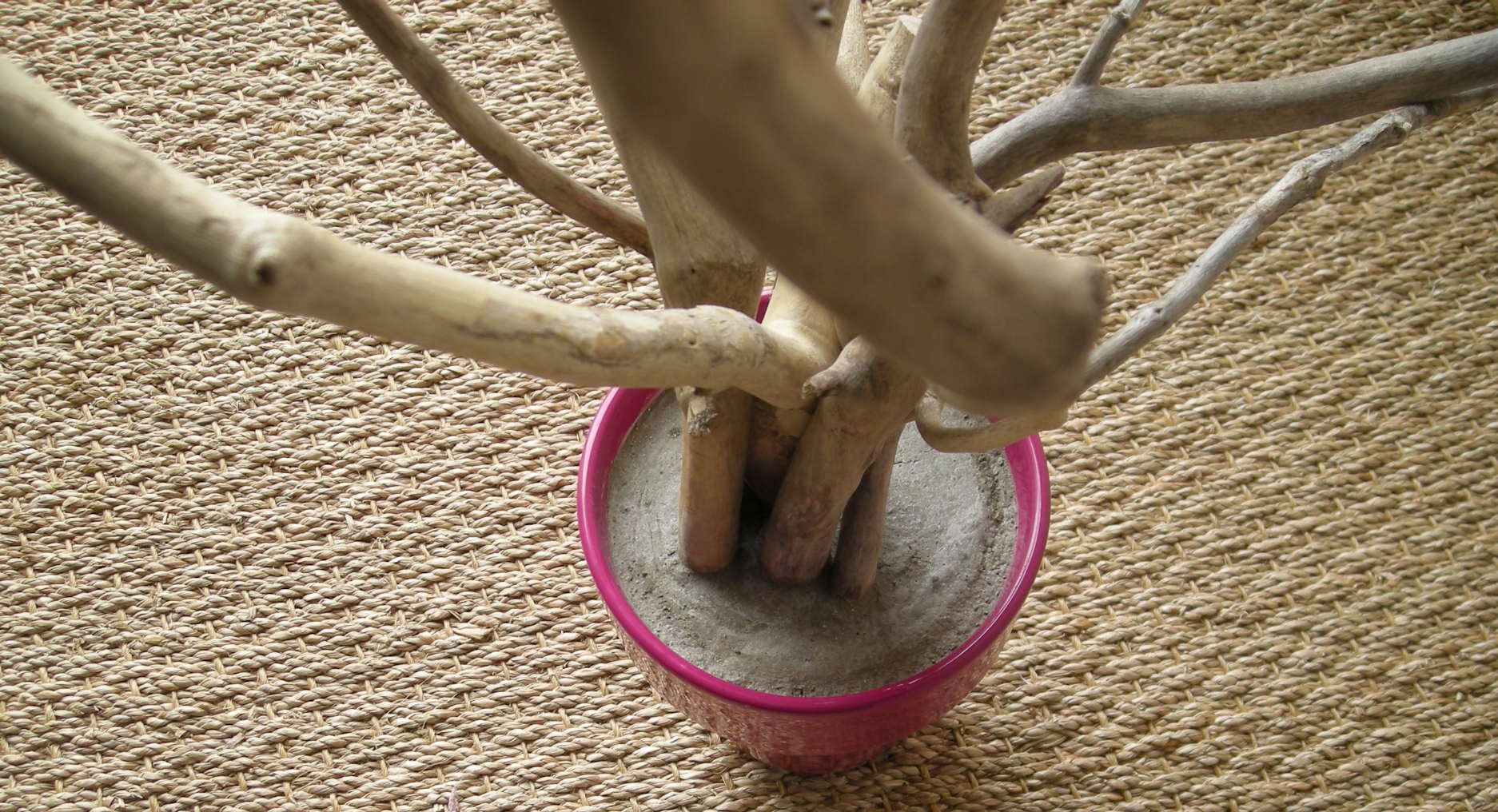 – Attacher les branches entre elles avec de la ficelle ou du fil de fer pour qu’elles restent groupées lorsque vous verserez le béton dans le pot.