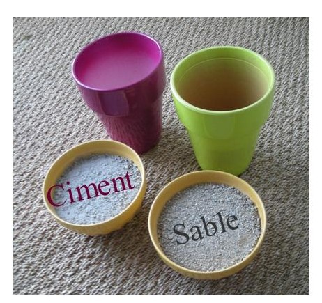 – Verser dans une gamète le mélange 50% de sable et 50% de ciment et ajouter de l’eau .
