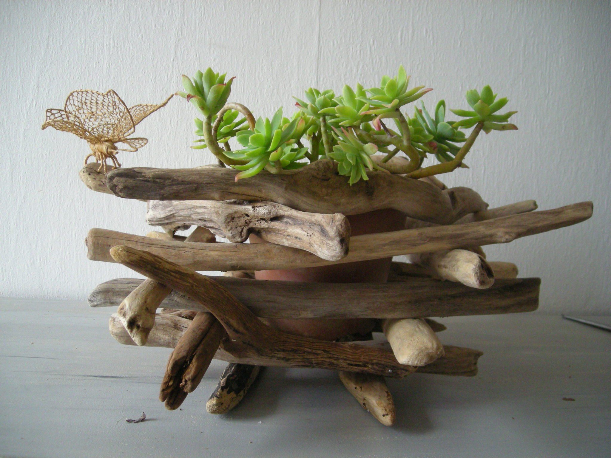 – Pour compléter la Déco du cache-pot, utiliser les jolis bois tordus.