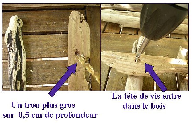 La tête de vis rentrera dans le bois et vous pourrez ainsi la camoufler en bouchant le trou avec de la pâte à bois.