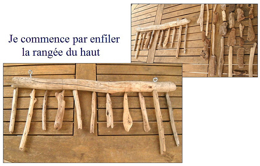 Si vous avez créé un motif  pour votre rideau   cela vous sera plus facile de  respecter votre plan en enfilant  vos bois dans ce sens.