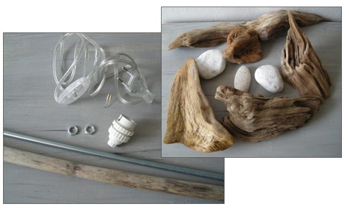 Comme je réalise également des lampes en galets (sans bois flotté), mon astuce est d’utiliser une tige en aluminium creuse. Celle-ci se trouve quasiment dans toutes les quincailleries et magasins de bricolage, se décline en plusieurs diamètres et se coupe aisément avec une scie à métaux ou un coupe-tube.