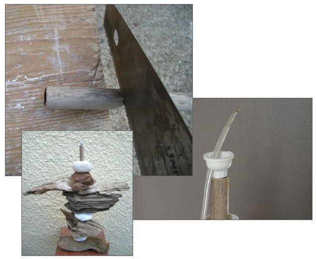 – Scier le roseau à la taille voulue , il va camoufler la tige filetée.